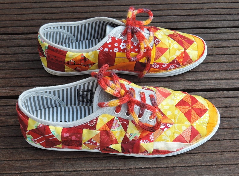 Von Bea gab es über die Gilde einen Aufruf seine Stoffschuhe zu verschönern. Diesem Aufruf ist Ann gefolgt und hat ihre Schuhe mit gepatchten Resten aufgepeppt.